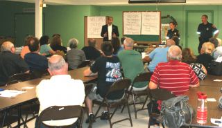 The primary focus of the meeting was improving the Town of Brookhaven-maintained park at the end of Bayview Avenue: Miramar Beach Bay Breeze Park. Local resident Jacquelyn Schwicke, who organized the group, led the discussion which centered on drug activity and loitering which is occurring in the late evening hours at the park. Legislator Calarco invited the Suffolk County Police Department’s Community Oriented Police Enforcement (COPE) unit to attend the meeting and three officers were on-hand to answer questions.